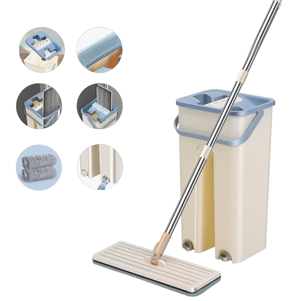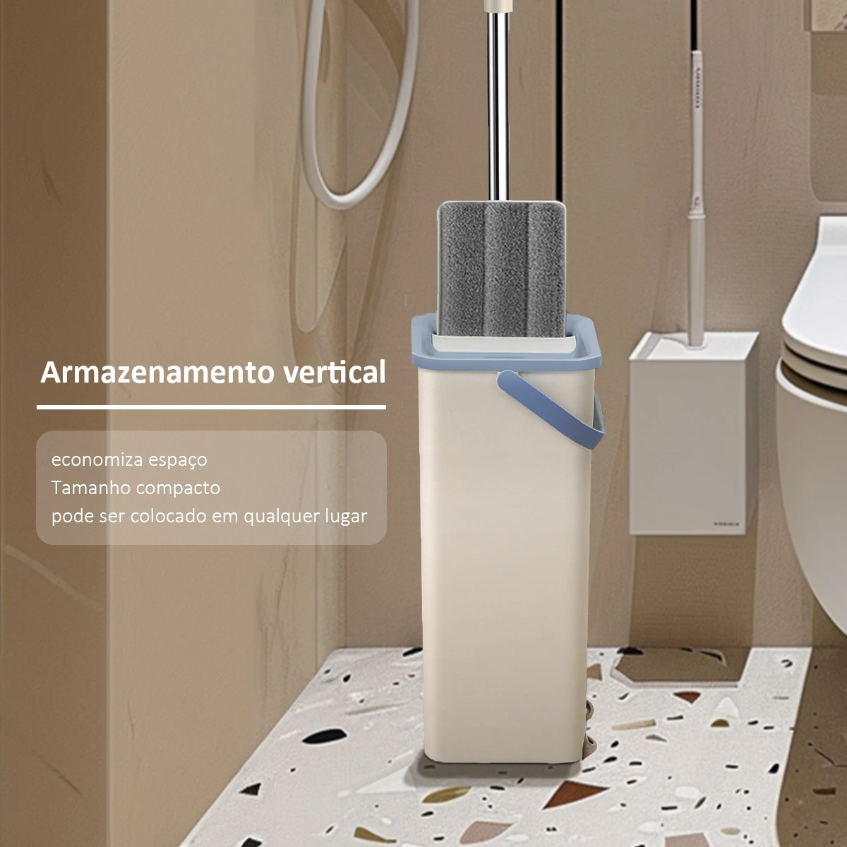 O Esfregão Lava e Seca com Balde de 6 Litros 4 em 1 lava, seca, tira o pó e dá brilho. Pode substituir o conjunto de pano, rodo, pá, vassoura e balde. Compacto, possui compartimentos para água suja e água limpa. Versátil, pode ser usado em todas as etapas da limpeza de forma eficiente.