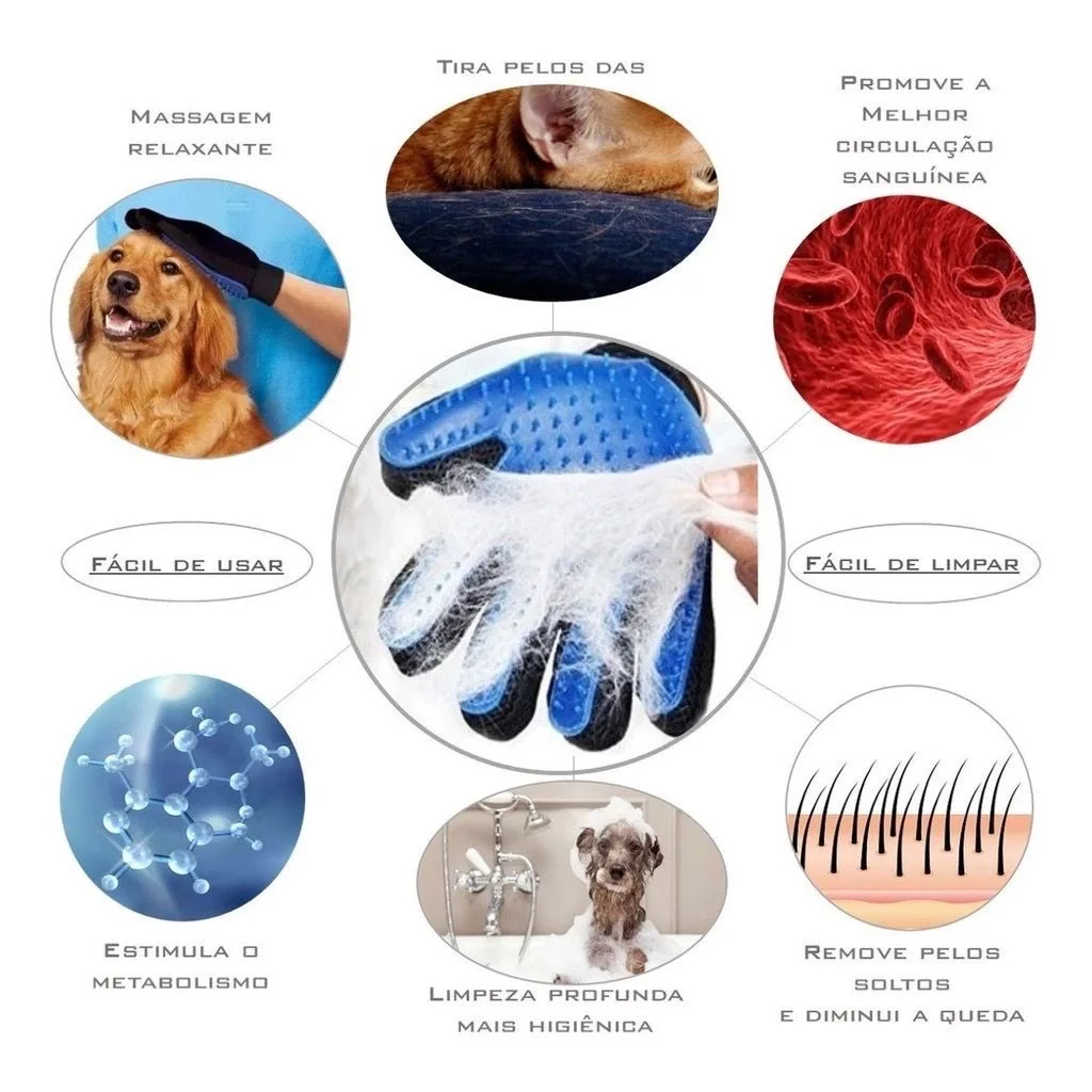 A Luva Removedora de Pelos foi projetada para remover pelos mortos, desfazer nós e proporcionar um pelo mais brilhante, deixando seu pet com uma aparência mais bonita e saudável.